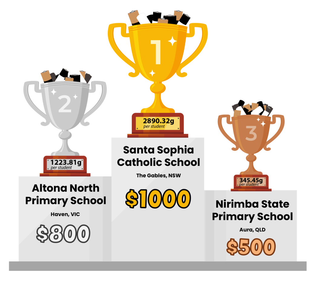 All participating schools will receive FREE battery buckets and recycling kits for every classroom along with a large battery recycling bin for the central school administration area.